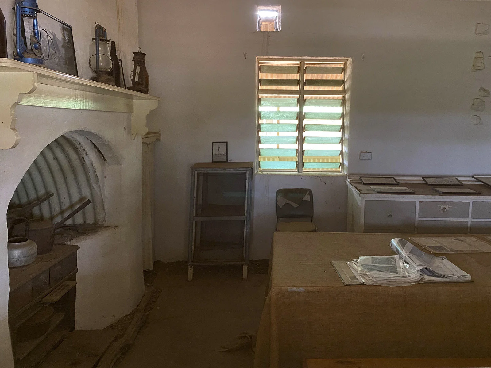 The Telegraph Office (requires a key to access) and has three rooms. A battery room, the central telegraph office with its fireplace that was manned 24/7, and a bedroom.