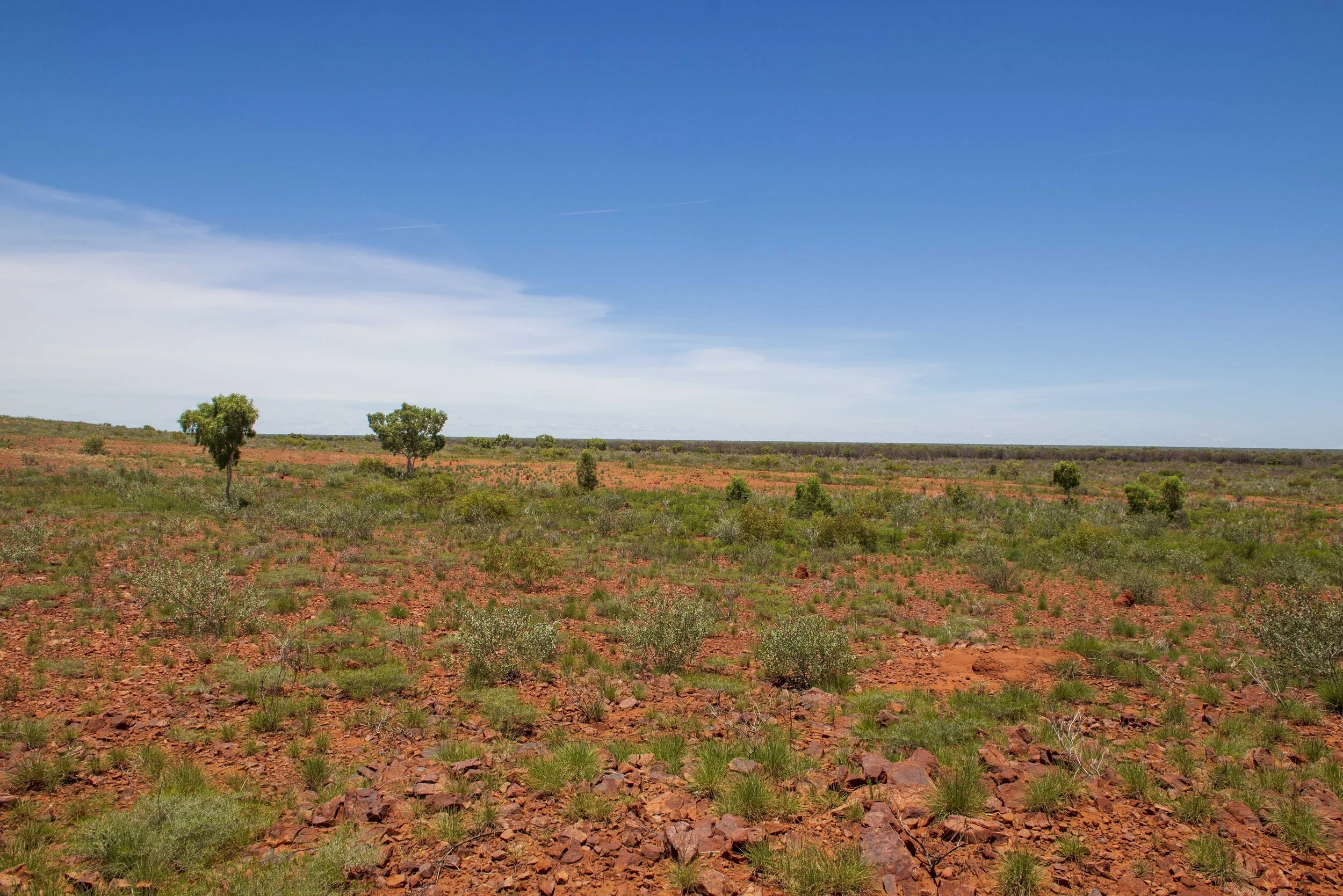 Due to the rain, we had to start our hike by crossing over a knee-deep body of water before heading up a slight hill. We were using map tracking and soon found remnants of the old road. Following this abandoned road for the next 6km gets you to the edge of the Kelly West site. From here cut into the meteorite site area to find the centre. The area is rocky with low shrubs and spinifex on the ridges and thicker low trees and brush in the lower-lying areas. Sadly cattle find no reason to visit the centre of this area and no cattle paths are available to lead you through the spinifex. We were using Avenza maps and it took us to beacon 327 (-19.927996, 133.952962) which was marked with a pyramid of stones. Not sure if this marked the centre of the meteorite site or the highest point in the area. Either way, it provides a great view of the surrounding countryside. Once you deviate off the abandoned road the beacon is about 1.3 km away as the bird flies. This is about a 16 km round trip when walking, it is very remote, dry, offering very little shade, and hot. If you are considering this walk make sure you are well prepared and experienced at navigating in the bush.